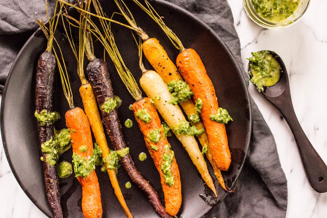 In the mean time, here is my new favorite roasted carrot recipe served with fresh chimichurri sauce. When I haven't been cocktail testing these past few weeks, I have been researching Thanksgiving recipes. And I am pretty sure these will be making an appearance at our Thanksgiving. They are quick and easy to make. Chimichurri is one of my favorite sauces, which can be used for roasted veggies, over your steak, on fish tacos, or used as a base for a vinaigrette.