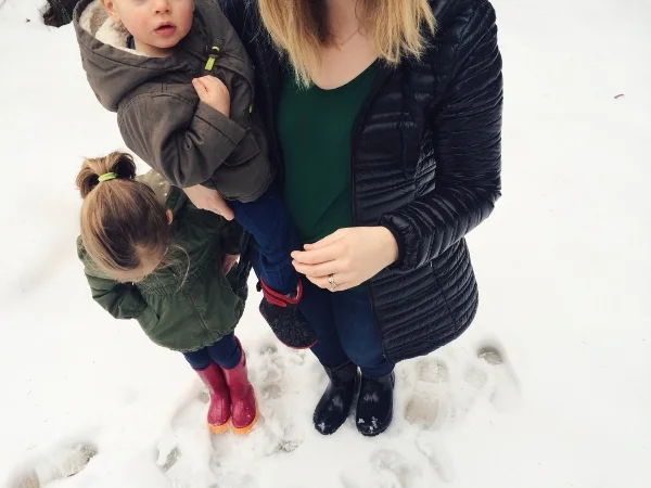After having a pretty busy weekend, we took advantage of Jake having Monday off and went for a long walk before dinner time. Sadly, because Hudson had a never-ending cold the past few weeks, he didn't get much snow time. So yesterday we put on our new Bogs boots and headed outside where the kids could run and jump in the snow. As much as the snow has caused us problems over the past few weeks, it was nice to take a step back, and take it all in. Here's to many more days of not rushing my kids, letting them get dirty and wet, holding little hands and cold nose kisses.