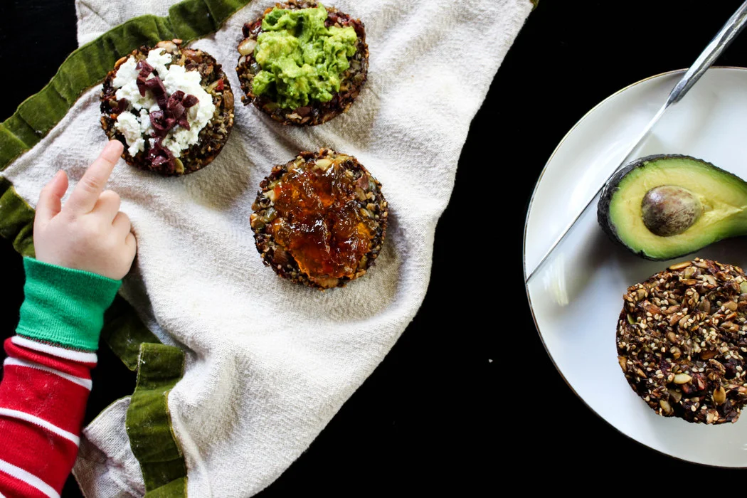 Smother your muffins or bread slices with jam, butter, mashed avocado, goat cheese. Anything works.