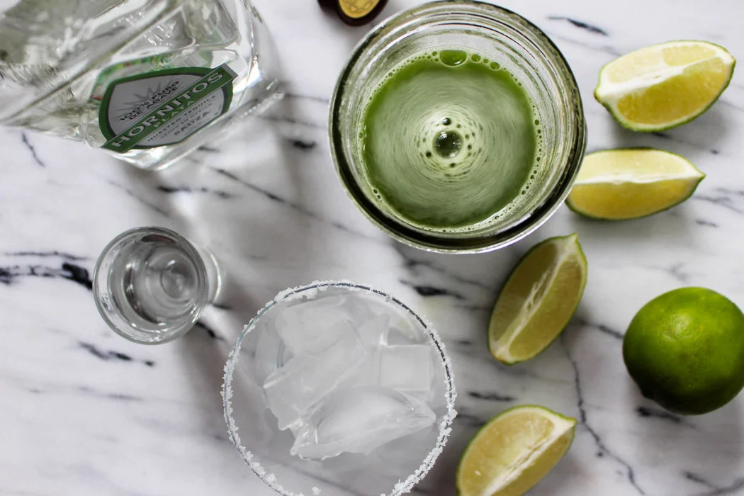 Fill jar with lots of ice, add 1/4 cup fresh cucumber juice, tequila, lime juice, and agave. Put lid on and shake, shake, shake.