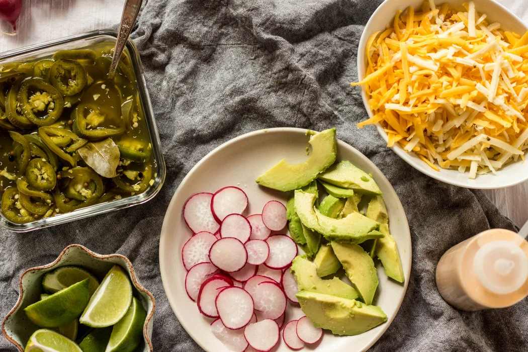 So to kick things off, I'm sharing with you a recipe that I have had planned for almost 6 months. That is a lot of build-up for one recipe! But it was well worth the wait. And I have to say, this is one of my most favorite recipes so far! It is everything I love about cooking. Comfort food, lots of cheese, my favorite chips, mixed in with handfuls of veggies, crema and so much heat! All piled into one big dish, where the 4 of us can sit around the table, all eating from the same plate, spilling, laughing, and devouring it all.