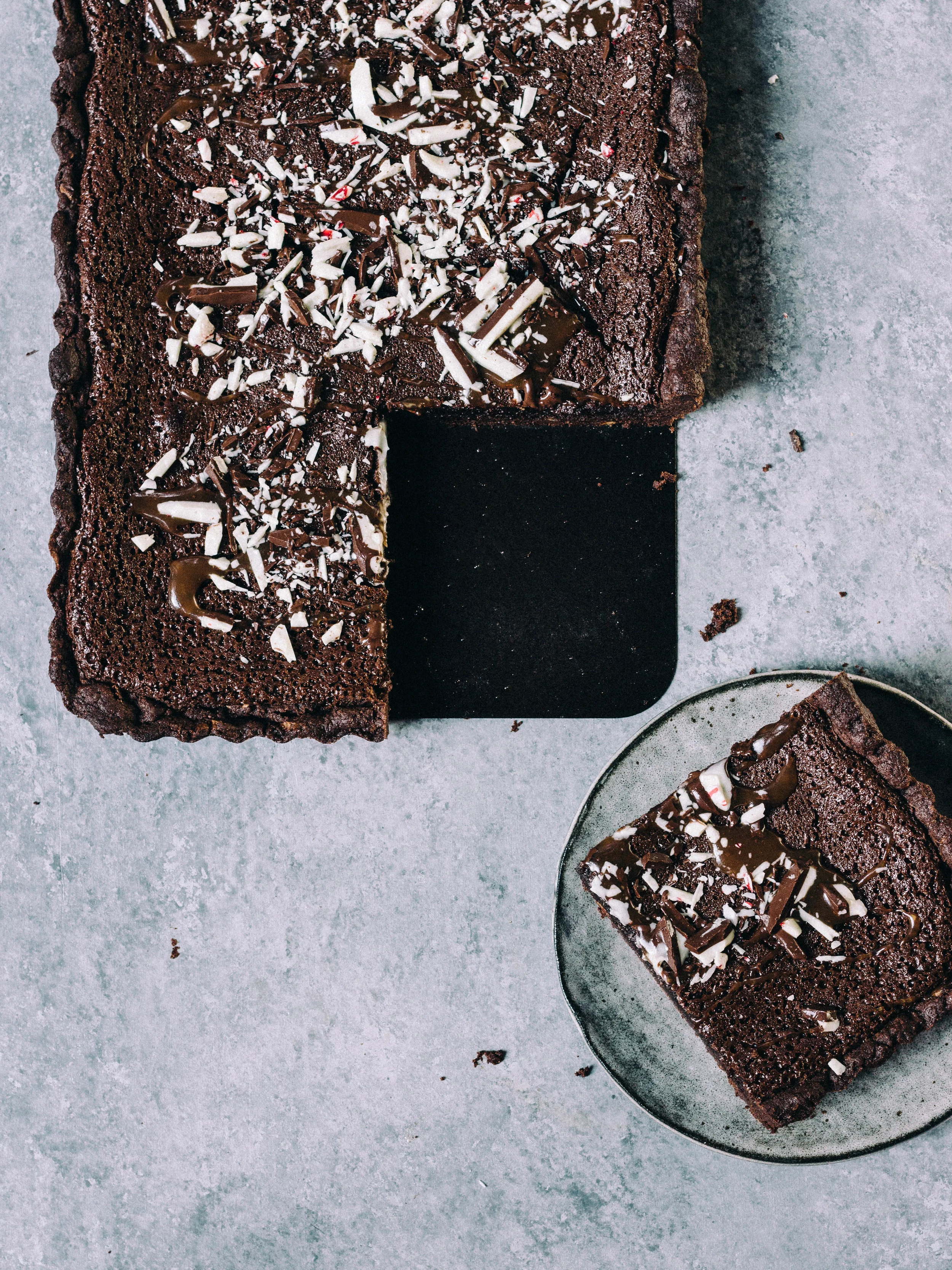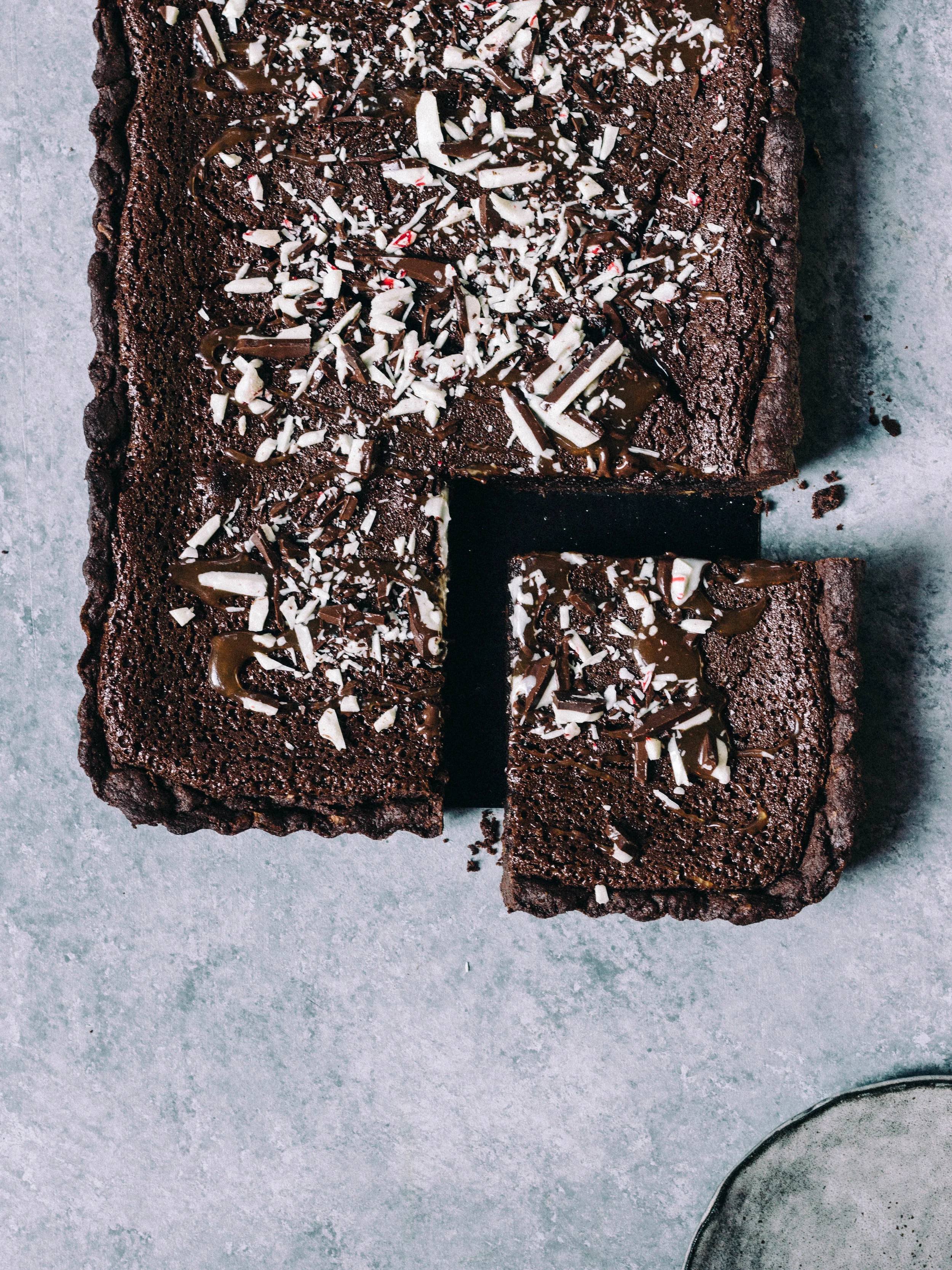 CHOCOLATE TART WITH PEPPERMINT BARK CRUST