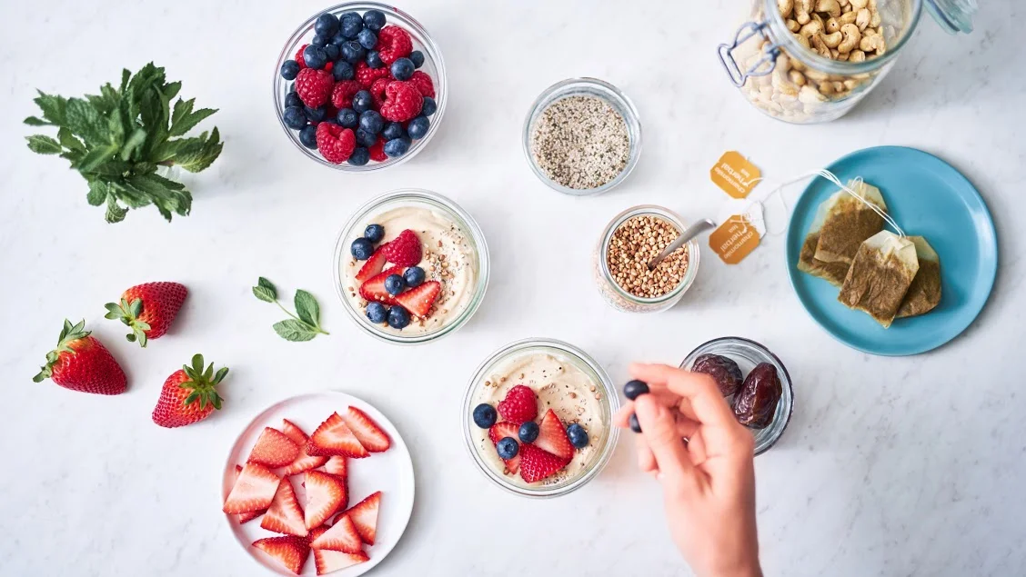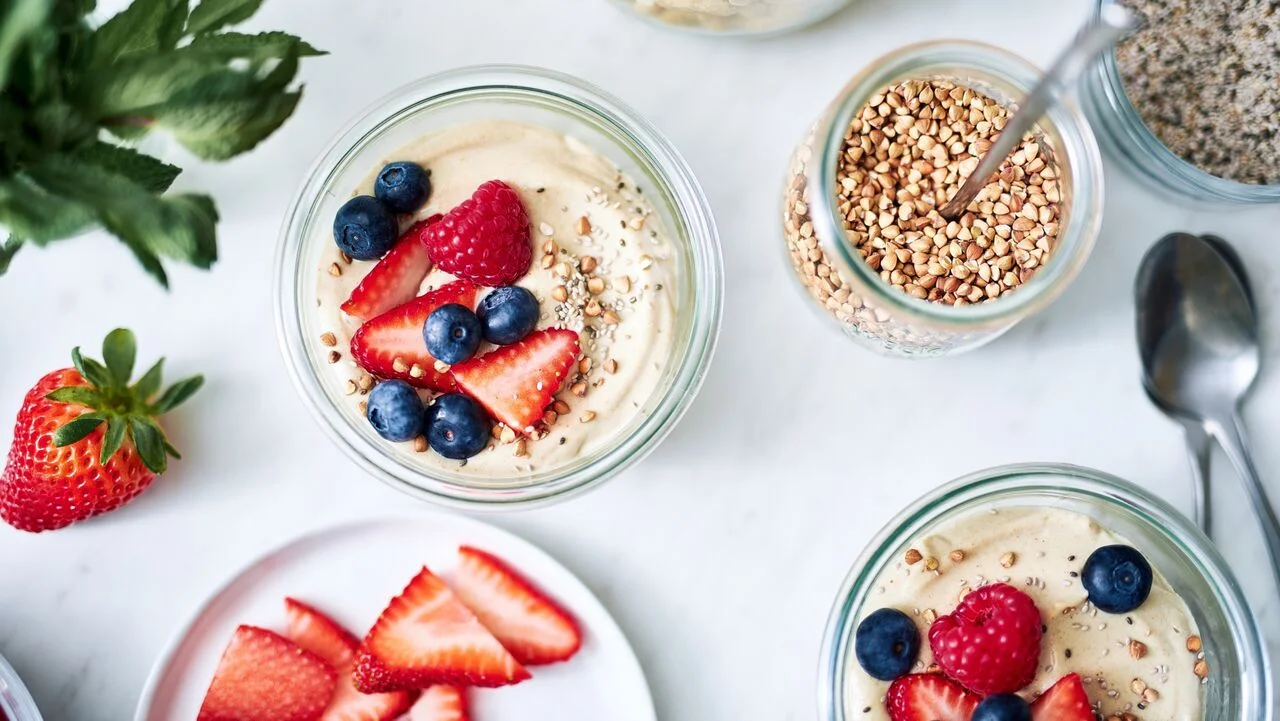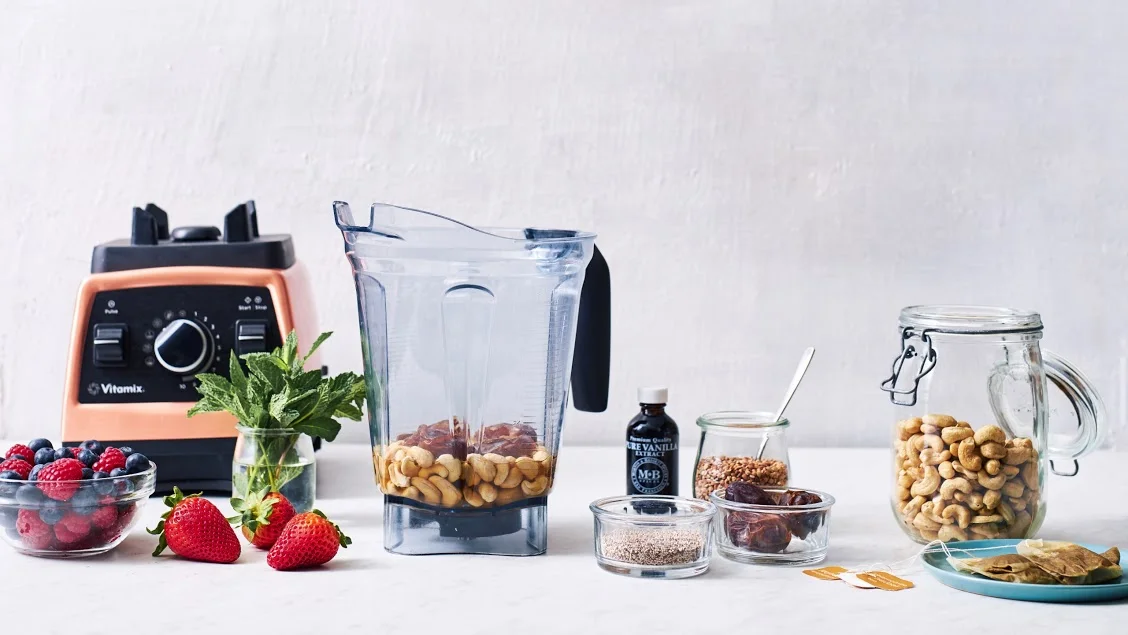 Transfer the ingredients from the bowl to a high-speed blender, add the vanilla and sea salt and purée until smooth, adding more water if necessary to allow your blender to run. If you prefer it to be sweeter, add another date or more honey. Chill before serving and top with a tablespoon of kasha, a teaspoon of chia seeds and berries, if using.